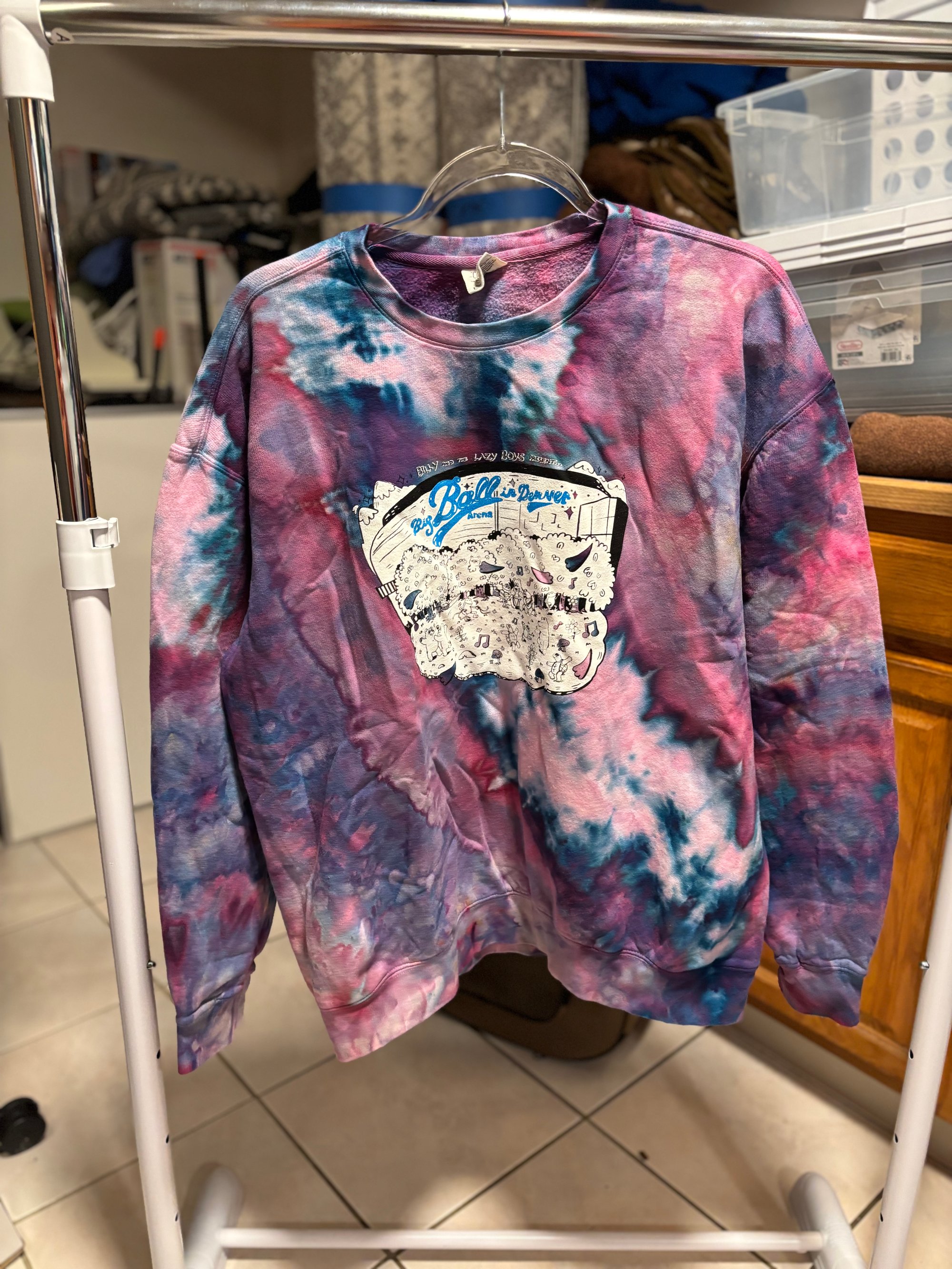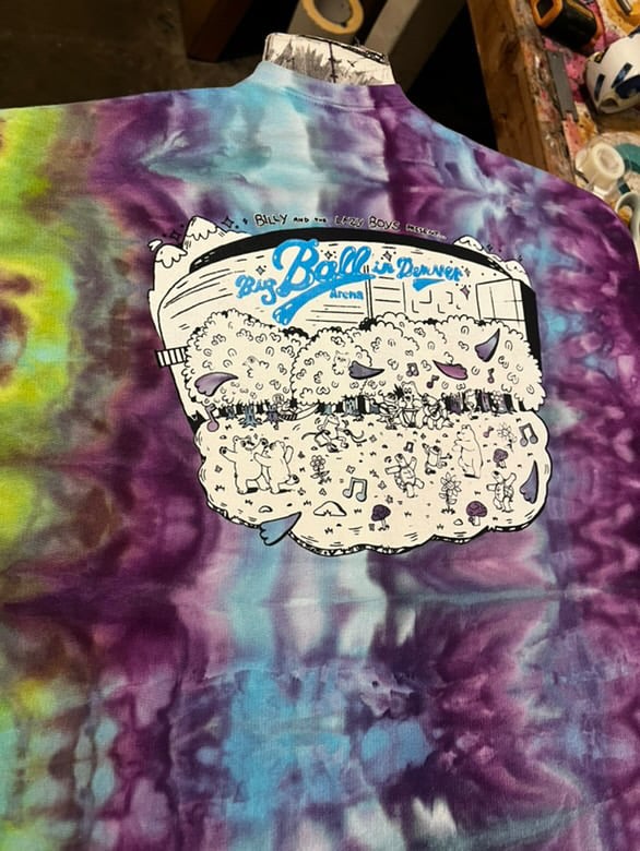 Big Ball in Denver, a stylish Tie-dye crewneck to dance around in at a Billy Strings show! Commemorating the first Bill Arena shows in 2025 and designed in collaboration with Shan Horan/boogiecorner, these crewnecks are all tie-dyed by hand by myself and screen printed in Colorado on Comfort Colors 1566 Crewneck Sweatshirts.